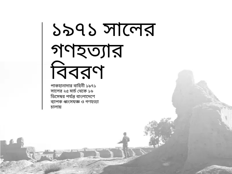 পাকহানাদার বাহিনী ১৯৭১ সালের ২৫ মার্চ থেকে ১৬ ডিসেম্বর পর্যন্ত বাংলাদেশে ব্যাপক ধ্বংসযজ্ঞ ও গণহত্যা চালায়। বাঙালির উপর এই নির্বিচার গণহত্যা বিশ্বের ইতিহাসে এক কালো অধ্যায়ের সংযোজন করে। পাকিস্তানি শাসক চক্রের নাগপাশ হতে মুক্তির লক্ষ্যে আন্দোলনরত বাঙালির স্বাধীনতার আকাঙ্ক্ষা চিরতরে স্তব্ধ করে দেবার প্রয়াসে এ গণহত্যা চালানো হয়। কিন্তু অদম্য বাঙালি জাতি বর্বর এ গণহত্যার বিরুদ্ধে রুখে দাঁড়ায় এবং শুরু করে মুক্তিযুদ্ধ।